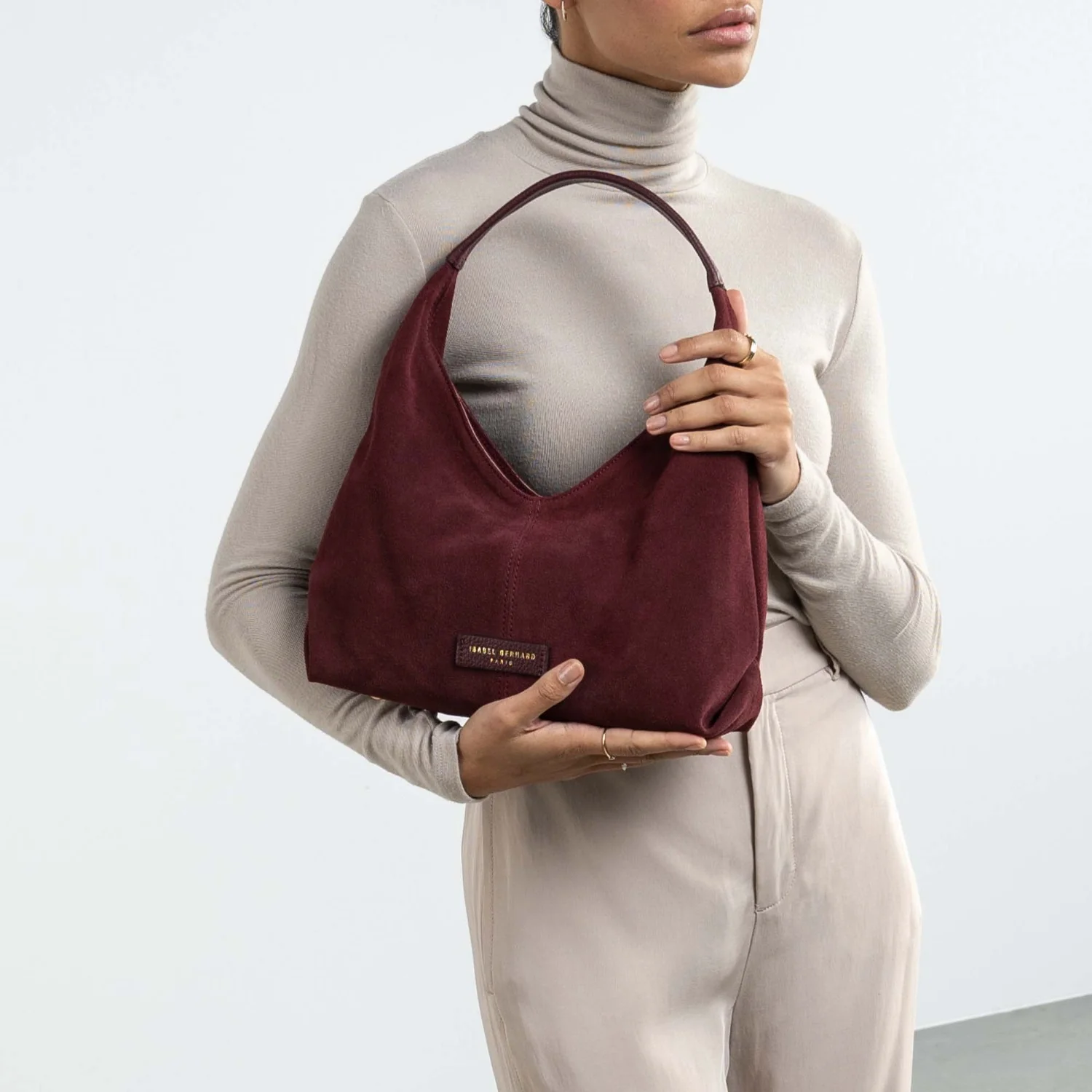Isabel Bernard Honoré Grace Mini bordeauxrote Wildleder-Handtasche IB21132-152
